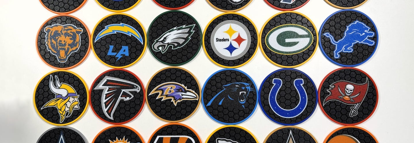 Explore 3D printed coasters designs now. Pick your favorite sports teams. Download and print my designs from Makerworld.